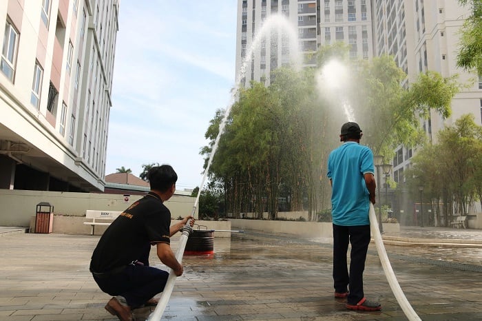 ✅ Tiến hành quét - dọn vệ sinh khuôn viên như lá rụng, rác thải...